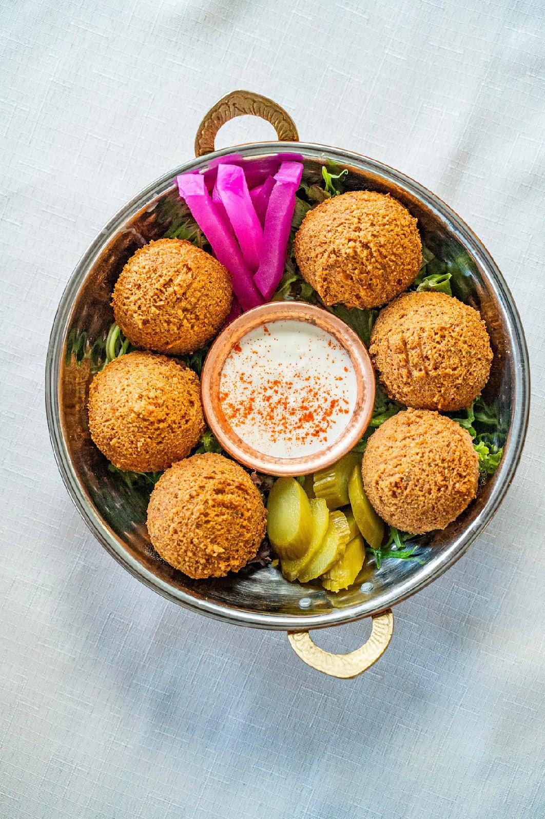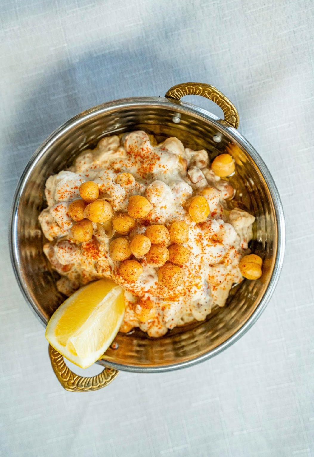 Fava beans & chickpeas mashed and mixed with tahini, garlic, lemon, salt, topped with extra virgin olive oil, tomato& parsley,