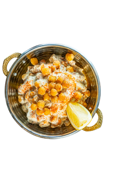 chickpeas, garlic,lemon,salt topped with extra virgin olive oil