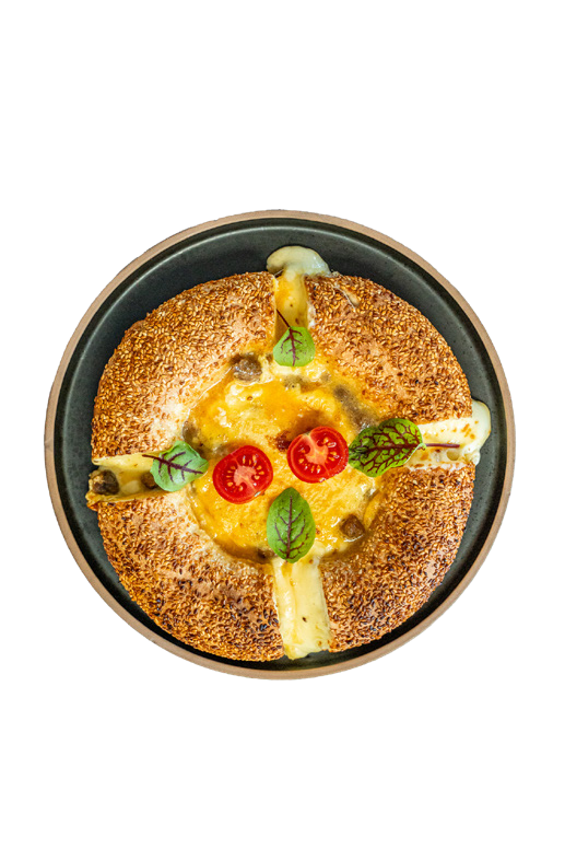 Simit kaak with cheese,fried eggs and lebanese sujuk